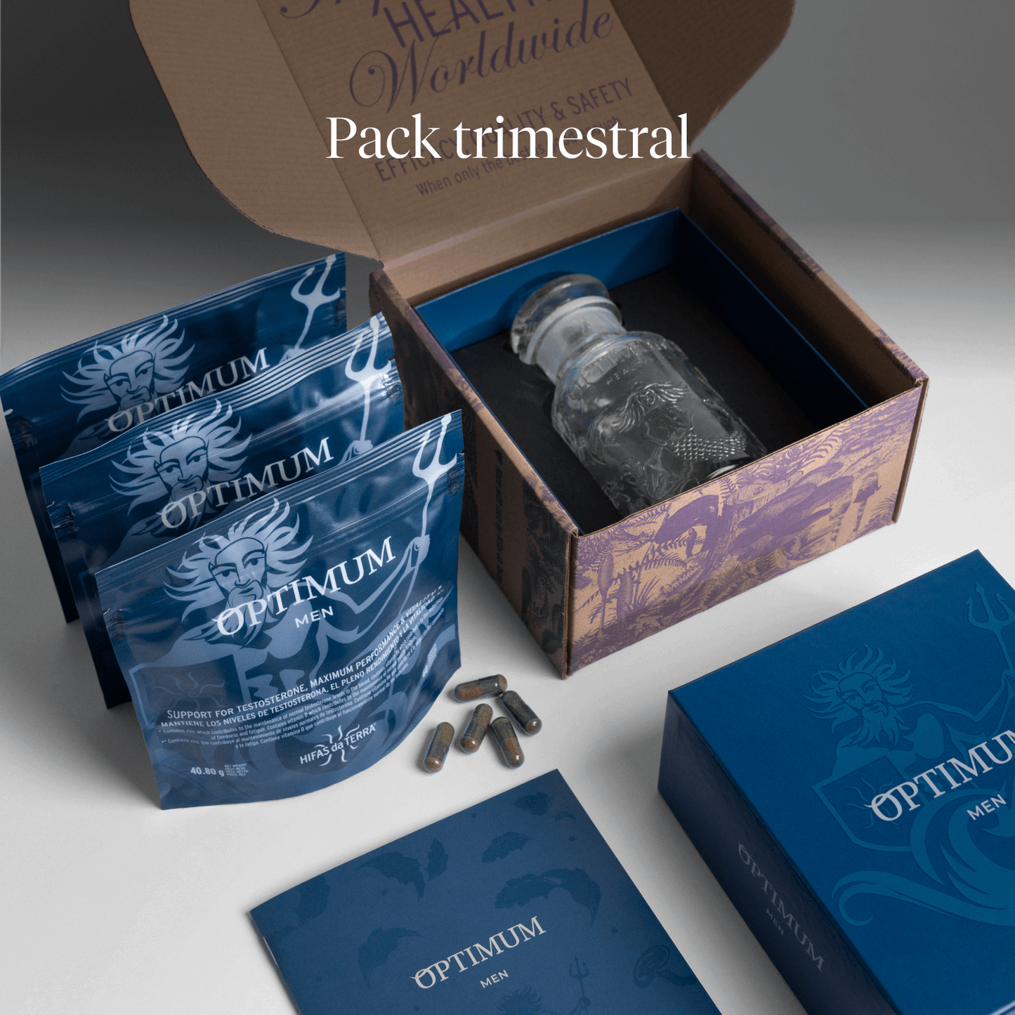 OPTIMUM MEN es un suplemento innovador que da respuesta a las 3 principales necesidades de los hombres para mantener un buen estado de salud y bienestar, consiguiendo un pleno rendimiento físico y emocional.  Su fórmula avanzada, que incluye extracto de raíz de Ashwagandha KSM-66, está desarrollada para conseguir una energía sostenible, mejorar la resistencia muscular, potenciar la concentración, aumentar la libido y equilibrar el sistema inmunológico y los niveles de testosterona.