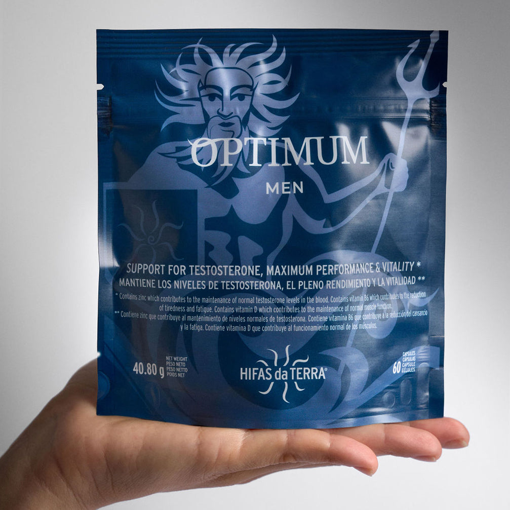 OPTIMUM MEN es un suplemento innovador que da respuesta a las 3 principales necesidades de los hombres para mantener un buen estado de salud y bienestar, consiguiendo un pleno rendimiento físico y emocional. Su fórmula avanzada, que incluye extracto de raíz de Ashwagandha KSM-66, está desarrollada para conseguir una energía sostenible, mejorar la resistencia muscular, potenciar la concentración, aumentar la libido y equilibrar el sistema inmunológico y los niveles de testosterona.